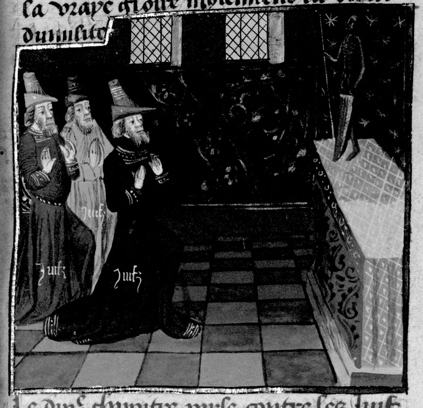 Miniatore francese (1450-1475), Un gruppo di Ebrei in preghiera