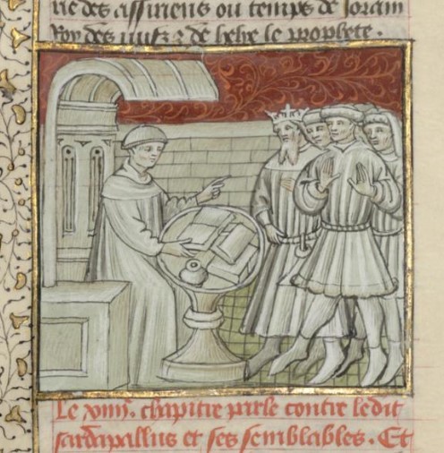 Parigi, Bibliothèque interuniversitaire Sainte-Geneviève, 1128, f. 53v. Giovanni Boccaccio incontra un gruppo di sfortunati.