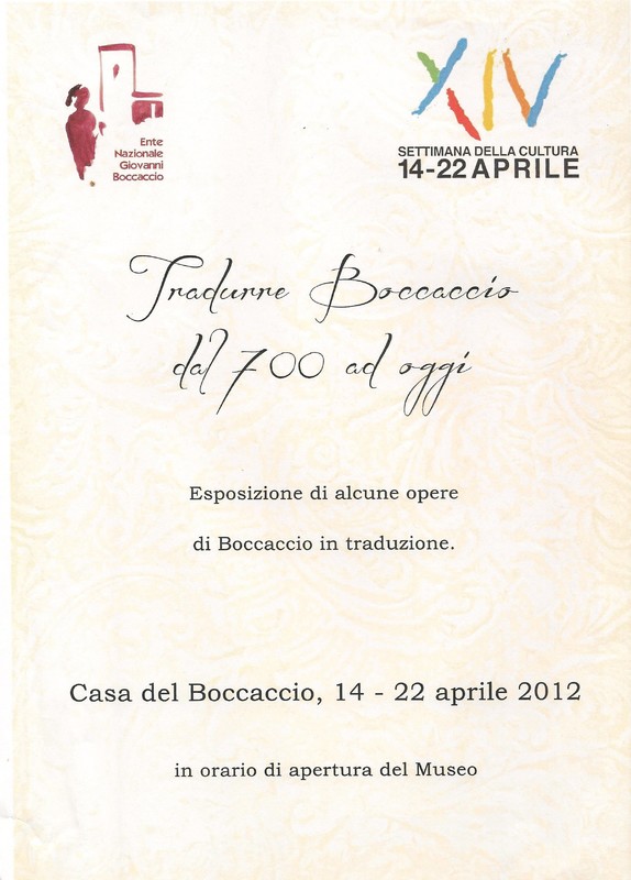 Esposizione di alcune opere di Boccaccio in traduzione in occasione della XIV settimana della cultura