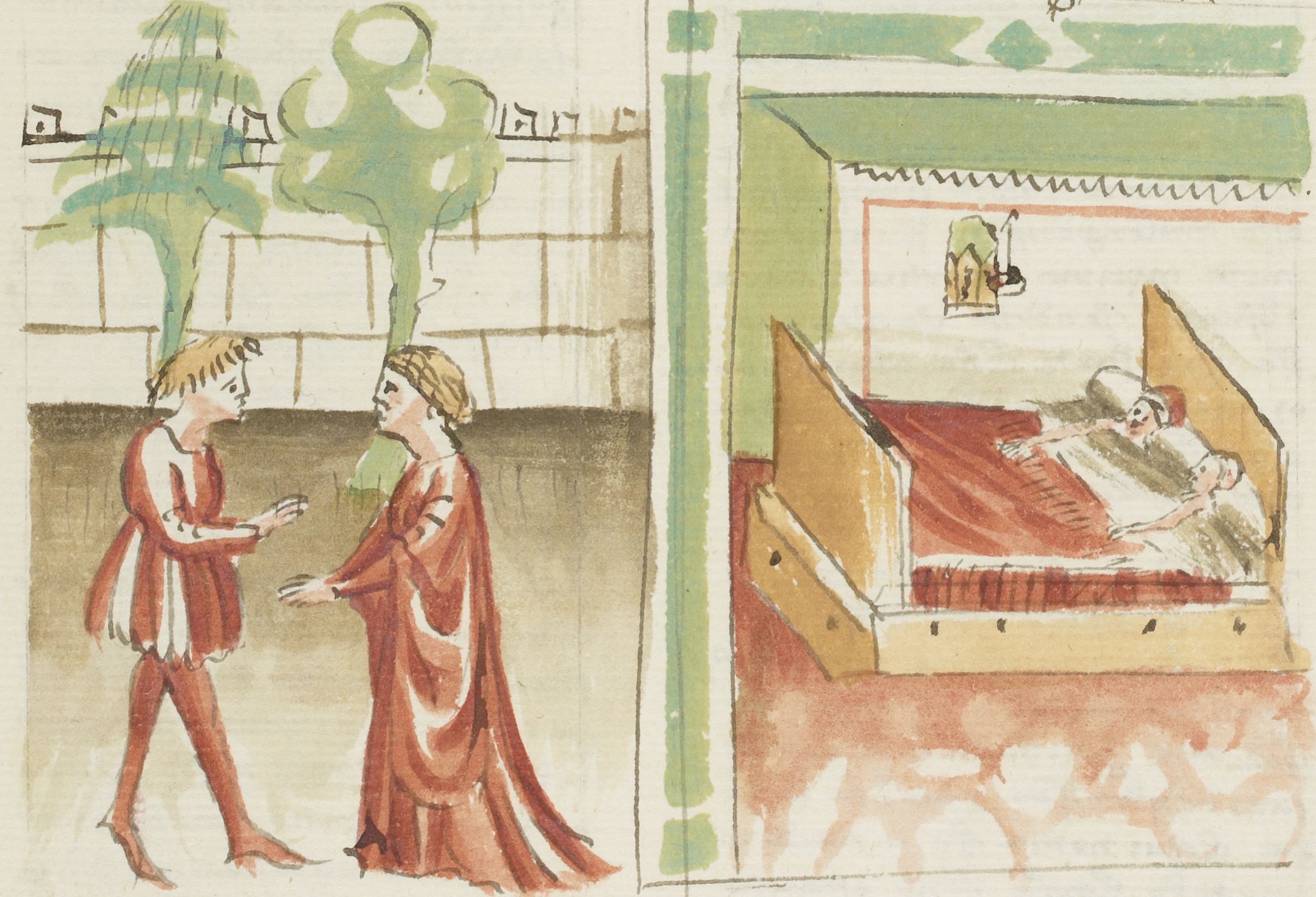 Miniatore fiorentino (1427-1430), Ricciardo conversa con Catella; i due giacciono insieme