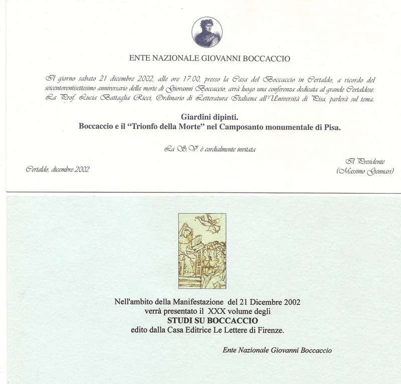 A ricordo del 627° anniversario della morte di Giovanni Boccaccio, la prof. Lucia Battaglia Ricci (Università di Pisa) parlerà sul tema
