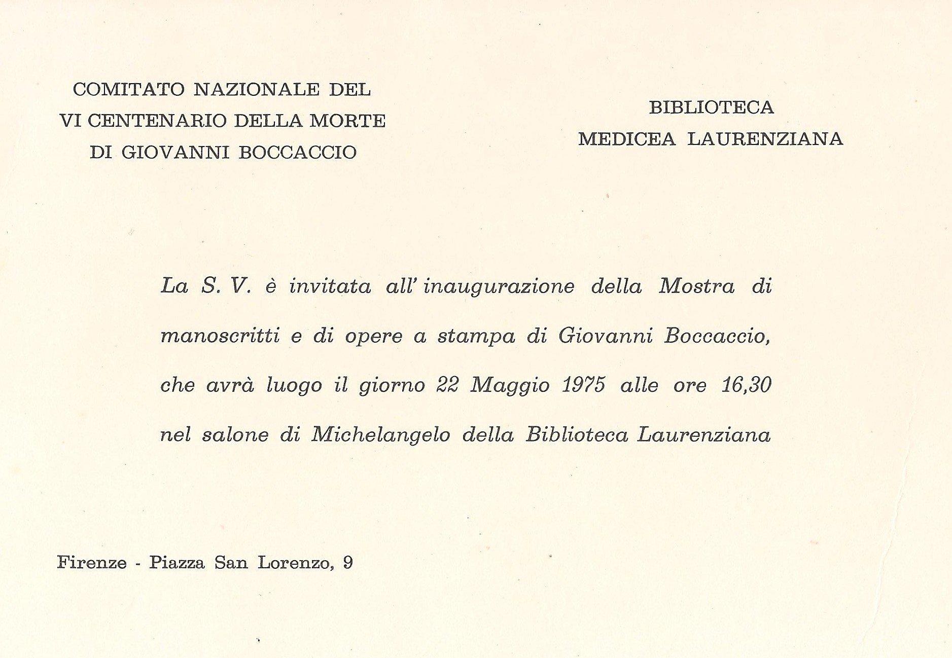 In occasione del VI Centenario della morte di Giovanni Boccaccio, inaugurazione della