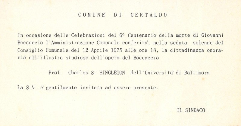 Cittadinanza onoraria al prof. Charles S. Singleton dell'Università di Baltimora