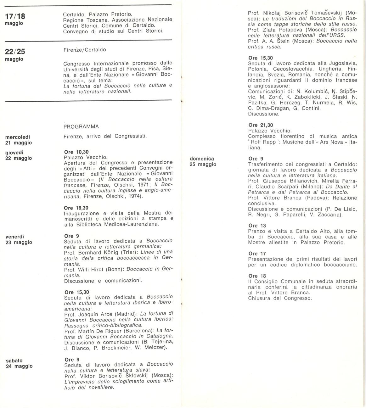 Convegno internazionale promosso dalle Università degli studi di Firenze, Pisa, Siena, e dall'Ente Nazionale Giovanni Boccaccio