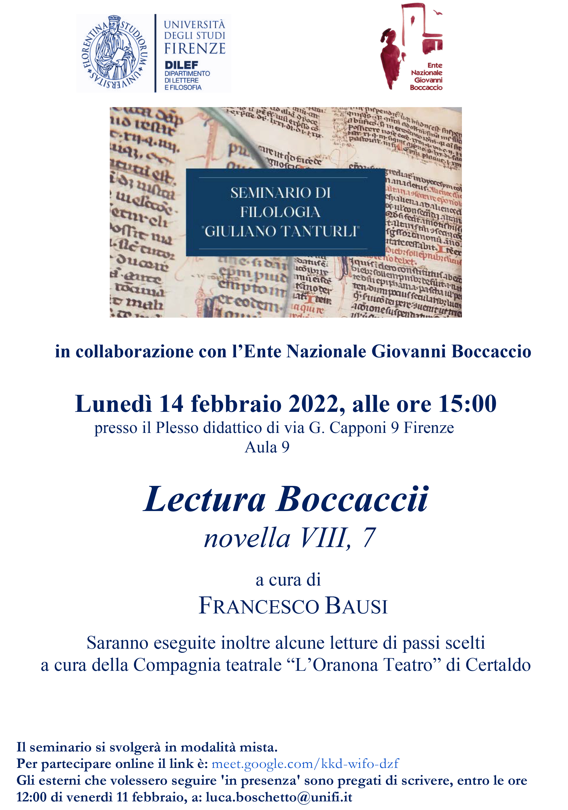 All'interno del Seminario di filologia "Giuliano Tanturli" Francesco Bausi commenta la novella VIII, 7