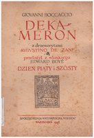 Dekameron. V / z drzeworytami Augustino de Zani ; przełożył z włoskiego Edward Boye ; przedmową opatrzył, tekst poprawił iuzupełnił Mieczyslaw Brahmer