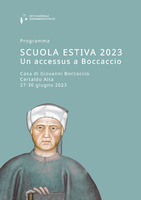 La Scuola estiva Un accessus a Boccaccio, nata nel 2019 e organizzata dall'ENGB in Casa Boccaccio, è rivolta a studiosi in formazione e dedicata all’opera di Giovanni Boccaccio, alla sua fortuna, agli strumenti critici per la sua interpretazione. Essa prevede lo scambio e l’acquisizione di metodi e problemi legati alla ricerca, in un ambito multidisciplinare di carattere letterario, filologico, linguistico, paleografico-codicologico, storico-artistico, in grado di offrire un’occasione di riflessione critica, di formazione metodologica, di aggiornamento storiografico.