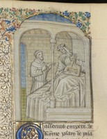 Parigi, Bibliothèque interuniversitaire Sainte-Geneviève, 1128, f. 287r. Giovanni Boccaccio incontra quattro imperatori.