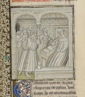 Parigi, Bibliothèque interuniversitaire Sainte-Geneviève, 1128, f. 292v. I soldati di Valente costringono i monaci ad arruolarsi nell'esercito.