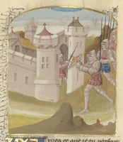 Parigi, Bibliothèque de l'Arsenal, 5192, f. 163r. L'esercito romano attacca la città di Cartagine.