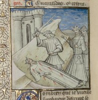 Parigi, Bibliothèque interuniversitaire Sainte-Geneviève, 1128, f. 212r. Mitridate III viene assassinato per ordine del fratello Orode.