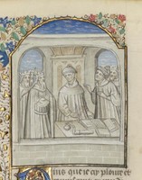 Parigi, Bibliothèque interuniversitaire Sainte-Geneviève, 1128, f. 206r. Giovanni Boccaccio incontra Cleopatra IV, Cleopatra Tea e Cleopatra Euridice.
