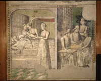 Milano, Pinacoteca del Castello Sforzesco, inv. n. 1347/12. Griselda dà alla luce una bambina, assistita da Gualtieri e da una fantesca.
