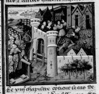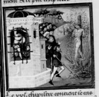 Parigi, Bibliothèque Nationale de France, Fr. 235, f. 122v. Malco fa impiccare suo figlio, il vescovo Cartalone; Malco viene assassinato (?).