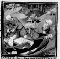 Parigi, Bibliothèque Nationale de France, Fr. 226, f. 259r. Guglielmo III, re di Sicilia, viene accecato e castrato.