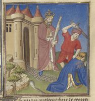 Parigi, Bibliothèque de l'Arsenal, 5193, f. 343r. Stilicone fa decapitare Rufino.