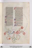 Città del Vaticano, BAV, Urb. lat. 450, f. 31r. Ritratto dell'autore Giovanni Boccaccio seduto allo scrittoio intento a compilare un manoscritto, all'interno dell'iniziale figurata S(i satis); nella cornice marginale decorata sono inseriti tre medaglioni raffiguranti al loro interno due angeli musicanti e una donna che sorregge un calice e una croce (personificazione della Chiesa?).