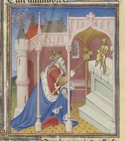 Parigi, Bibliothèque de l'Arsenal, 5193, f. 133v. Artaserse ordina il massacro dei propri figli.