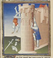 Parigi, Bibliothèque de l'Arsenal, 5193, f. 136v. I Galli assediano il Campidoglio (rappresentato come una fortezza) e vengono respinti.