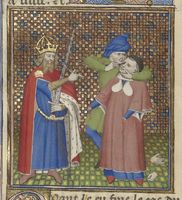 Parigi, Bibliothèque de l'Arsenal, 5193, f. 125v. Malco fa impiccare suo figlio, il vescovo Cartalone.