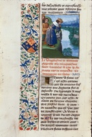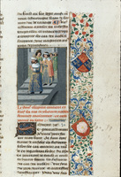 Londra, British Library, Royal 14 E V, f. 207r. Agatocle bacia la sua prima moglie, la vedova di Damas.