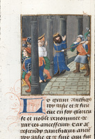 Londra, British Library, Royal 14 E V, f. 168r. Un re guida tre uomini giù da una rampa di scale (la deposizione di Evagora?).
