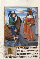 Londra, British Library, Royal 14 E V, f. 280v. Demetrio viene decapitato sulla nave con cui si reca a Tiro.
