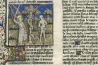 Chantilly, Bibliothèque du Château de Chantilly, 856, f. 119v. Semiamira siede sul trono insieme al figlio e ad un consigliere (il modello è frainteso).