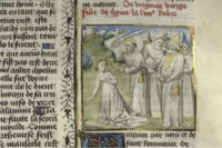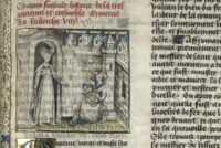 Chantilly, Bibliothèque du Château de Chantilly, 856, f. 111v. Paolina in preghiera sulla soglia del tempio; all'interno della camera da letto appare Dio Padre (?).