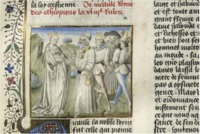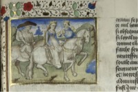 Chantilly, Bibliothèque du Château de Chantilly, 856, f. 101r. Ipsicratea cavalca insieme al marito verso la battaglia.