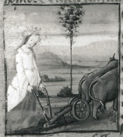 Dresda, Sächsische Landesbibliothek, F 171 b, f. 11r. La dea Cerere guida l'aratro in un campo.