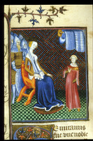 Londra, British Library, Royal 20 C V, f. 12r. Giunone riceve le suppliche dei sacerdoti e di una partoriente.
