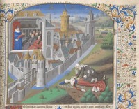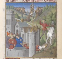 Londra, British Library, Add. 35321, f. 100r. Annone, con le mani mozzate, viene giustiziato dinanzi alla folla.
