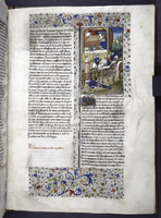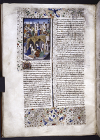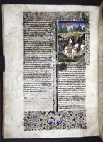 New York, Public Library, Spencer 33, f. 46r. Sempronia si difende contro Equizio dinanzi al magistrato romano.