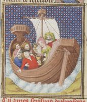 Parigi, Bibliothèque Nationale de France, Fr. 12420, f. 108r. Teossena avvelena i suoi nipoti e ne fa gettare i cadaveri in mare.