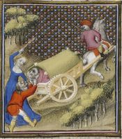 Parigi, Bibliothèque Nationale de France, Fr. 598, f. 109v. Beronice insegue gli assassini del figlio su un carro da guerra.