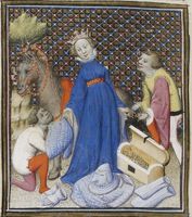 Parigi, Bibliothèque Nationale de France, Fr. 598, f. 101v. Sulpicia consacra con l'incenso la nuova statua nel tempio di Venere.