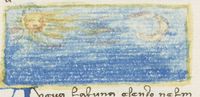 Parigi, Bibliothèque Nationale de France, It. 63, f. 195r. Il copista del manoscritto, datato 10 ottobre 1427, è Ludovico di Salvestro Ceffini. Il sole e la luna sospesi nel cielo.