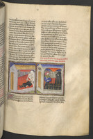 Vienna, Österreichische Nationalbibliothek, 2561, f. 176r. Girolamo muore disteso sul letto accanto a Salvestra e a suo marito; in chiesa si svolgono i funerali di Salvestra.