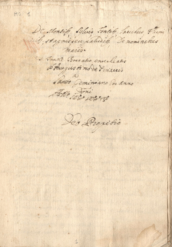 A f. 1r: De montibus, sylvis, fontibus, lacubus, fluminibus, stagnis seu paludibus, de nominibus