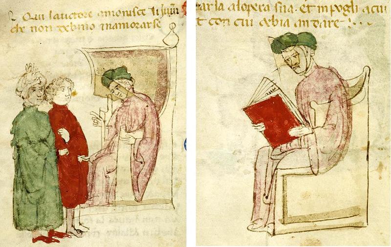 Miniatore napoletano (1414), L'autore arringa due giovani; l'autore in cattedra