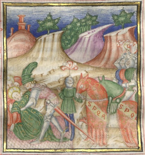 Miniatore lombardo (1450 c.), Lelio sorregge Giulia svenuta