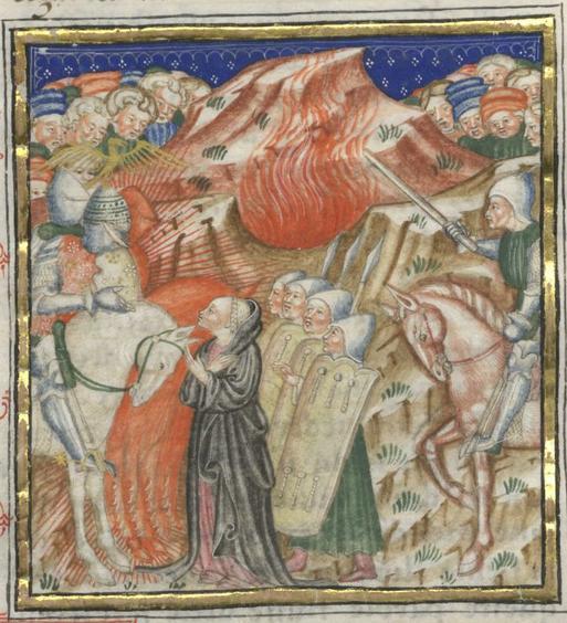 Kassel, Universitätsbibliothek Kassel, Landesbibliothek und Murhardsche Bibliothek der Stadt Kassel, 2° poet. et roman. 3, f. 55v. Florio, nascondendo la propria identità, promette il suo aiuto a Biancifiore.