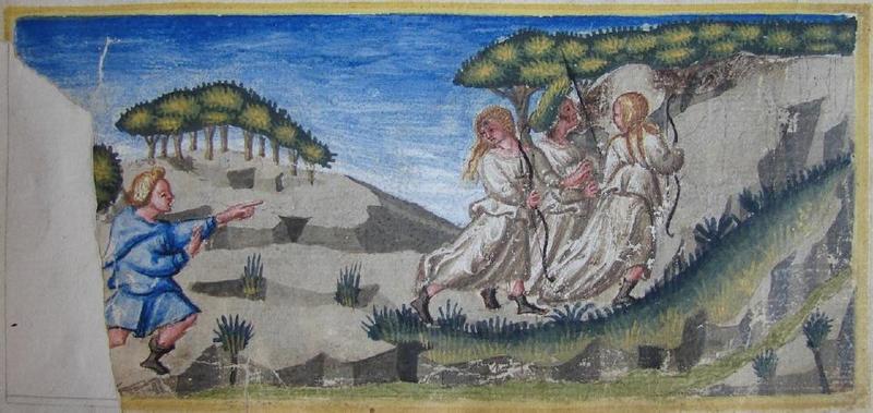 Miniatore fiorentino (1450 c.), Africo insegue tre ninfe
