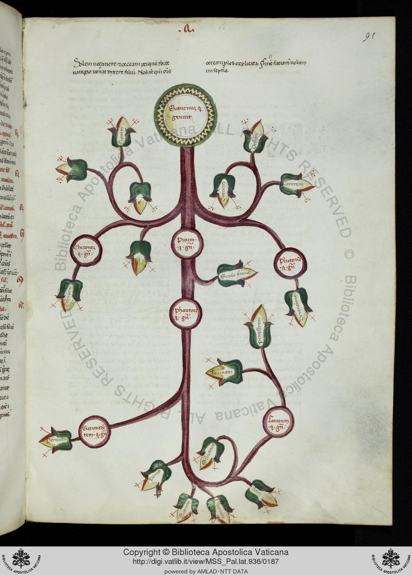 Città del Vaticano, BAV, Pal. lat. 936, f. 91r. Albero genealogico di Saturno.