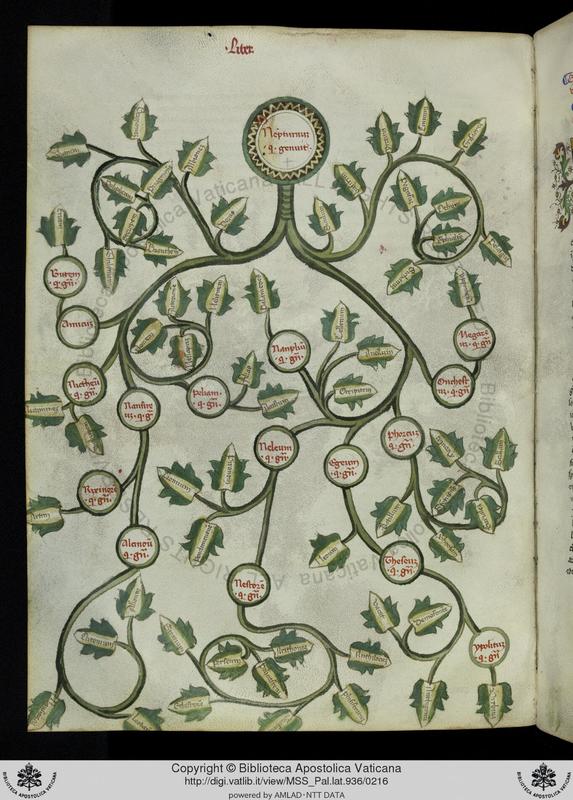 Città del Vaticano, BAV, Pal. lat. 936, f. 105v. Albero genealogico di Nettuno.