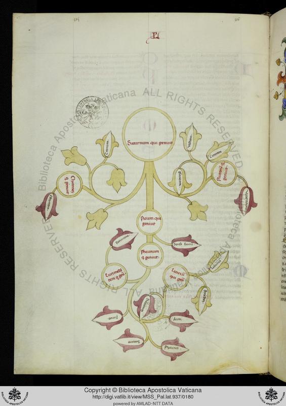 Città del Vaticano, BAV, Pal. lat. 937, f. 87v. Albero genealogico di Saturno.