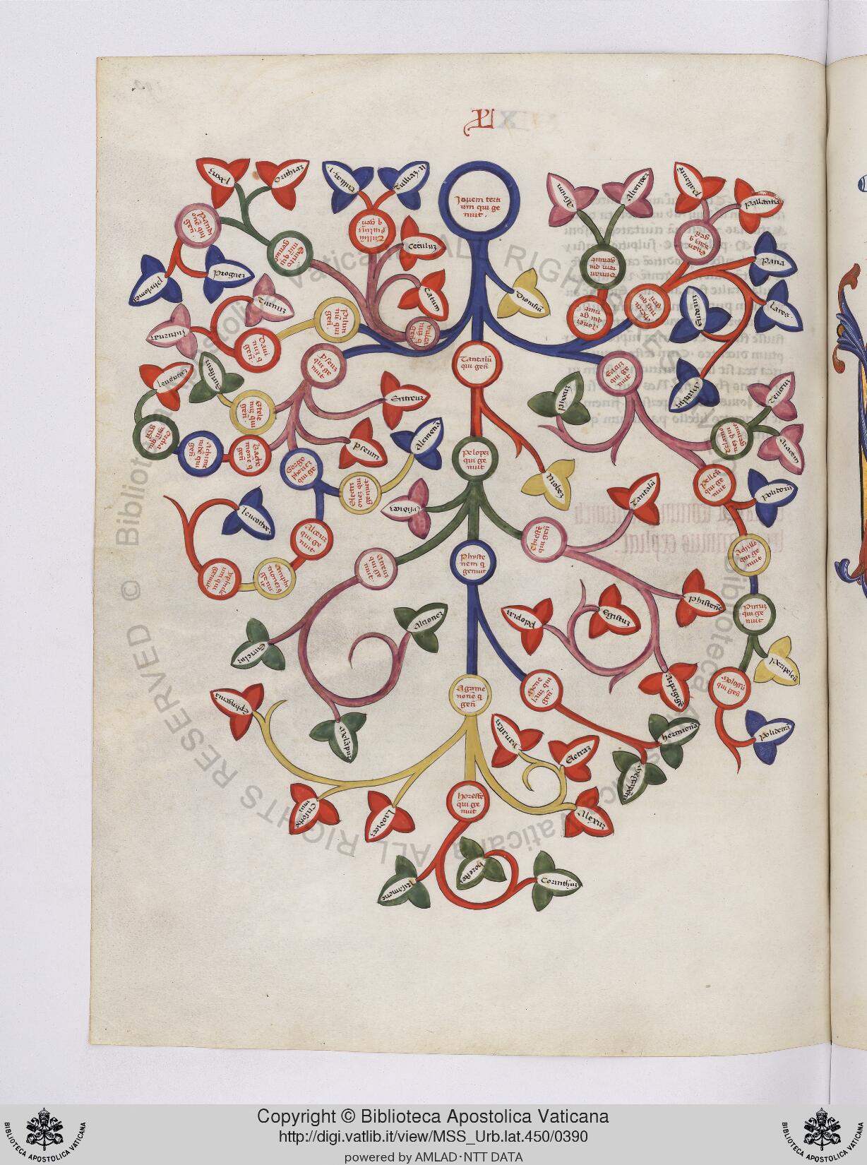 Città del Vaticano, BAV, Urb. lat. 450, f. 190v. Albero genealogico di Giove terzo.