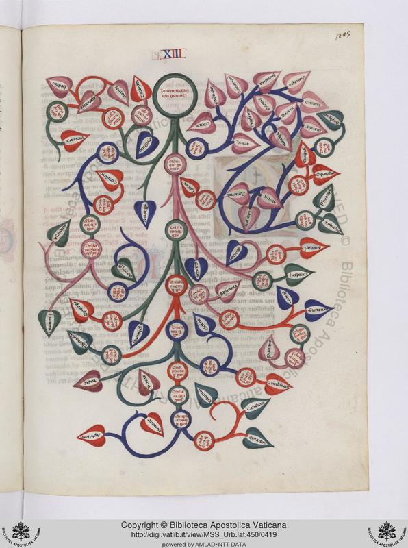 Città del Vaticano, BAV, Urb. lat. 450, f. 205r. Albero genealogico di Ercole e Eolo.