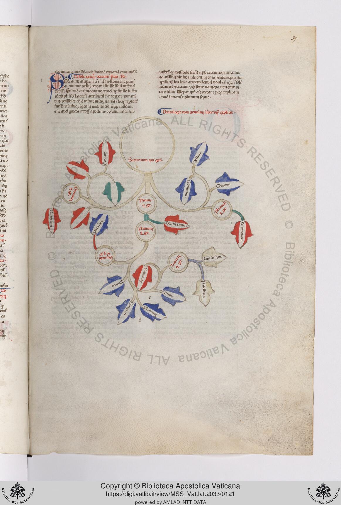 Città del Vaticano, BAV, Vat. lat. 2033, f. 59r. Albero genealogico di Saturno.
